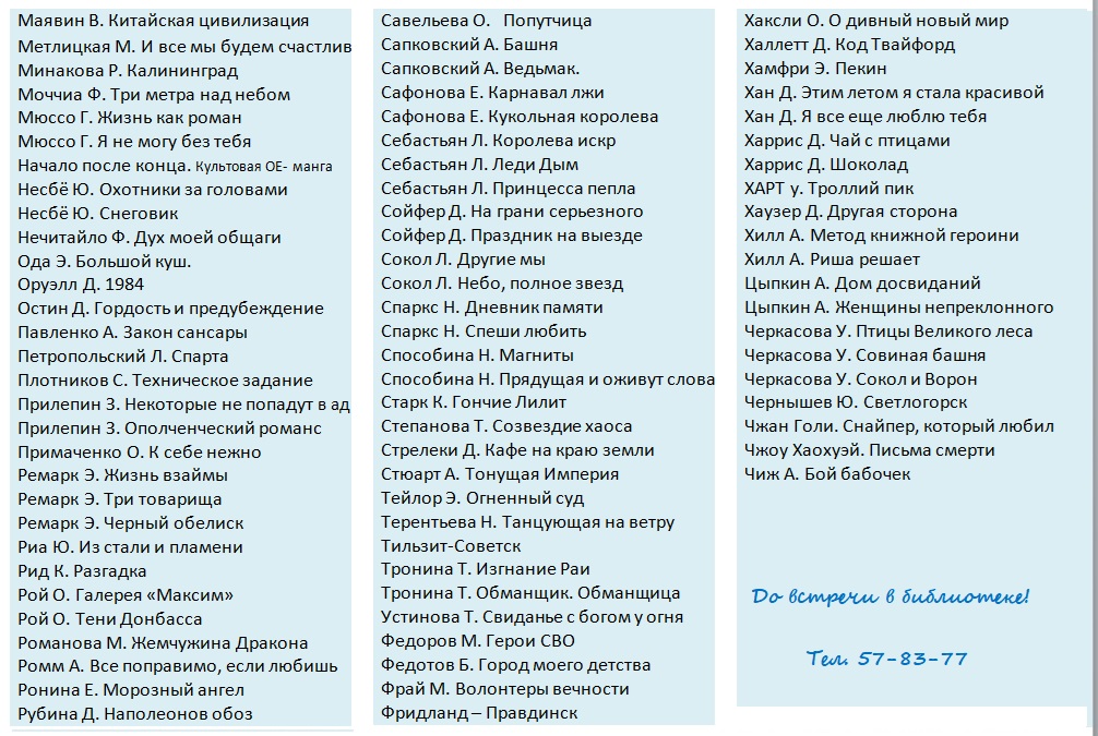 Предлагаем познакомиться с полным списком новой передвижной выставки «Любишь читать – читай!»